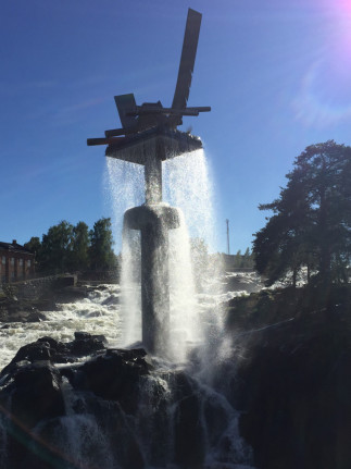 Hønefoss-Øst Rotaryklubb har tatt initiativ til å fornye belysningen på skulpturen Oppgangssaga i fossen ved Hønefoss bru.